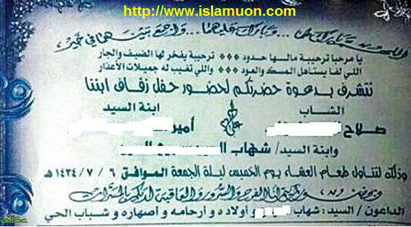 تناقلت وسائل التواصل الاجتماعي بطاقة دعوة لعريس سعودي يحتفل بزواجه غداً الخميس في إحدى قاعات الأفراح في مكة المكرمة.